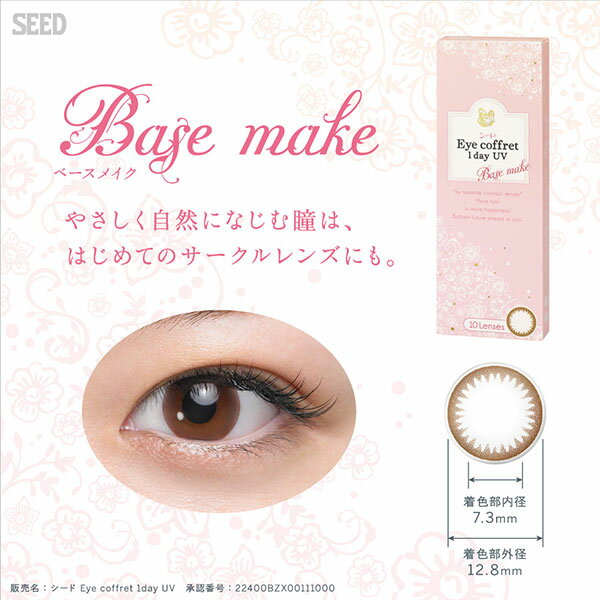 ナチュラルに毎日使いたい人におすすめ! アイコフレワンデーUV 度数 ±0.00(度なし) -0.25〜-6.00(0.25ステップ) -6.50〜-12.00(0.50ステップ) +0.25 +0.50〜+3.00(0.25ステップ) DIA 14.0mm 着色直径 リッチメイク、グレイスメイク:13.2mm ナチュラルメイク:13.0mm ベースメイク:12.8mm 含水率 38% 医療機器承認番号 22400BZX00111000 販売元 株式会社シード 製造国 海外製台湾他 広告文責 株式会社カズマ 011-210-2400 区分 高度管理医療機器 高度管理医療機器 札保医許可(機器)第5032号「高度管理医療機器等販売許可証」取得【注意】こちらの商品はお取り寄せとなり、注文数によってはお届けまでに1週間以上かかる場合がございます。
