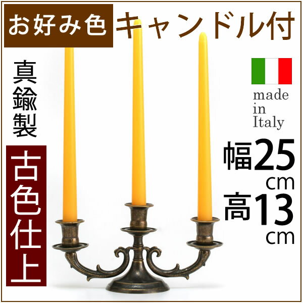 燭台 3本 コロニアル AN3本キャンドルスタンド【送料無料(北海道沖縄県は別途ご負担金あり)】●コロニアル●3C古色 キャンドル3本つき!燭台 【キャンドルスタンド フォルダー・イタリア製真鍮雑貨・ローソク立て】CIC032-AN【asu】【RCP】
