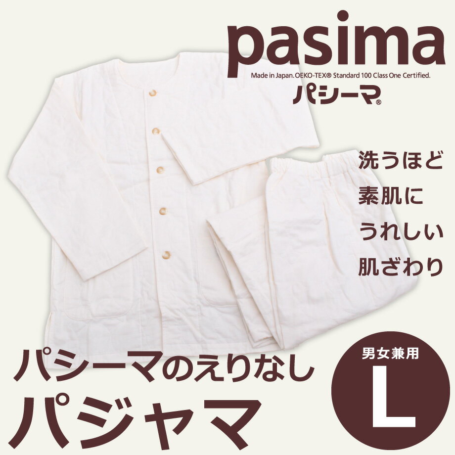 パシーマのえりなしパジャマ Lサイズ 5845NL パシーマ パジャマ 大人 長袖 きなり 生成 やわらか 秋冬 軽い 優しい 男女兼用 女性L むれない 二部式 敬老の日