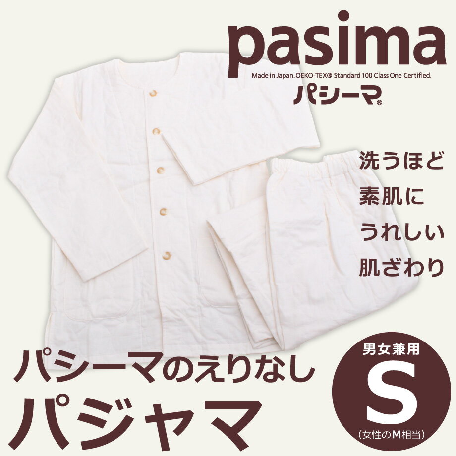 パシーマのえりなしパジャマ Sサイズ 5845NS パシーマ パジャマ 大人 長袖 きなり 生成 やわらか 秋冬 軽い 優しい 男女兼用 女性M むれない 二部式 敬老の日