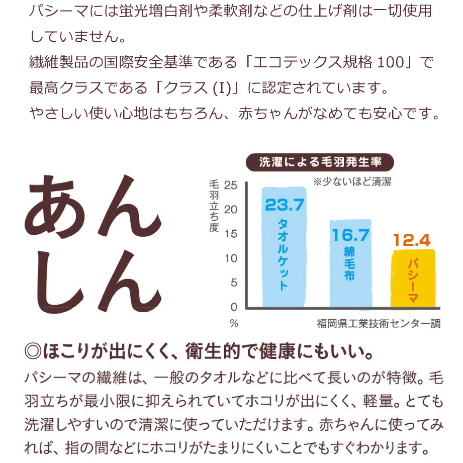 ・安心の日本製〜パシーマは、すべて福岡県の工場でまごころ込めて生産されています お手入れ方法 ※タンブラー乾燥はお避け下さい。